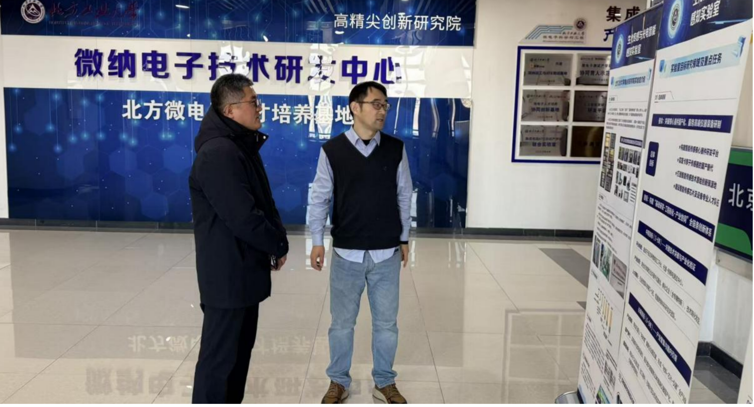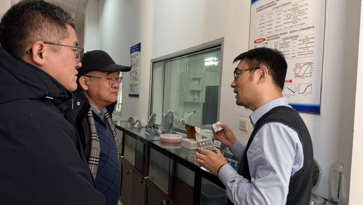 在明安杰教授的引导下,韩总一行首先参观了公司的生化传感与光电感知实验室。明教授在展示连廊详细介绍了实验室的发展历程、核心研究领域、高水平人才团队建设情况及取得的突出成就。