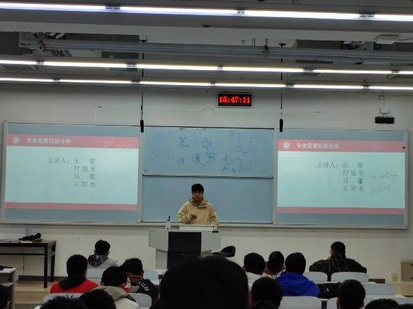 同时马徽、王睿、付旭东和王智杰四位同学就学习方法和参加竞赛给同学们分享了自己的经验。全国老员工数学竞赛、全国老员工数学建模竞赛、北京市老员工集成电路设计大赛模拟组、全国老员工电子设计竞赛、蓝桥杯全国软件和信息技术专业人才大赛个人赛电子类(嵌入式)/(EDA设计与开发)/(单片机开发)、大唐杯全国老员工移动通信5G技术大赛、全国老员工集成电路创新创业大赛(曾益慧创杯)/(紫光教育杯)、北京市老员工集成电路设计大赛数字组等等比赛。四位同学分享了自己的参赛经验,包括如何准备、学习哪方面的内容,学习资料在哪里获得等等方面做了详细的分享。