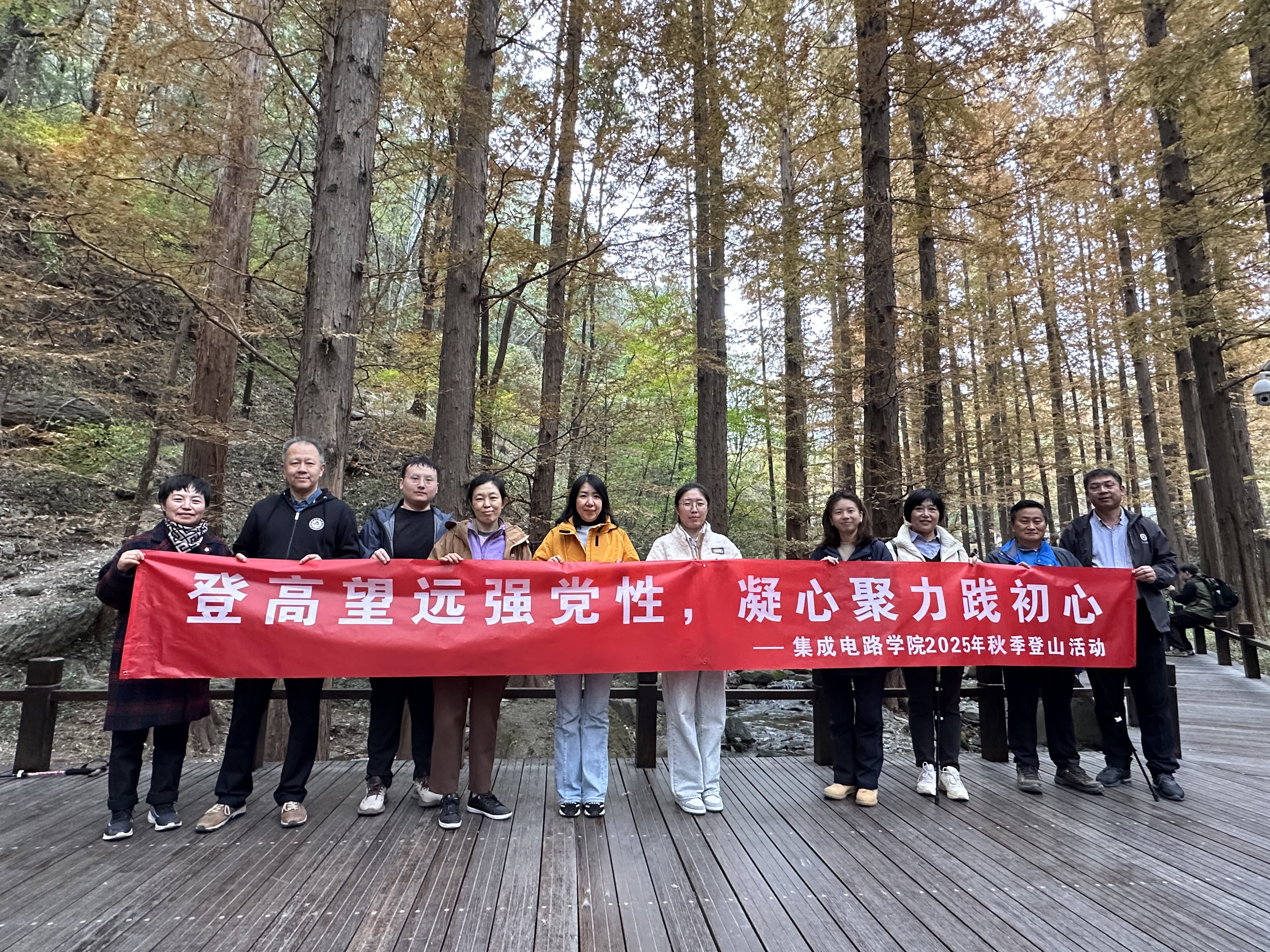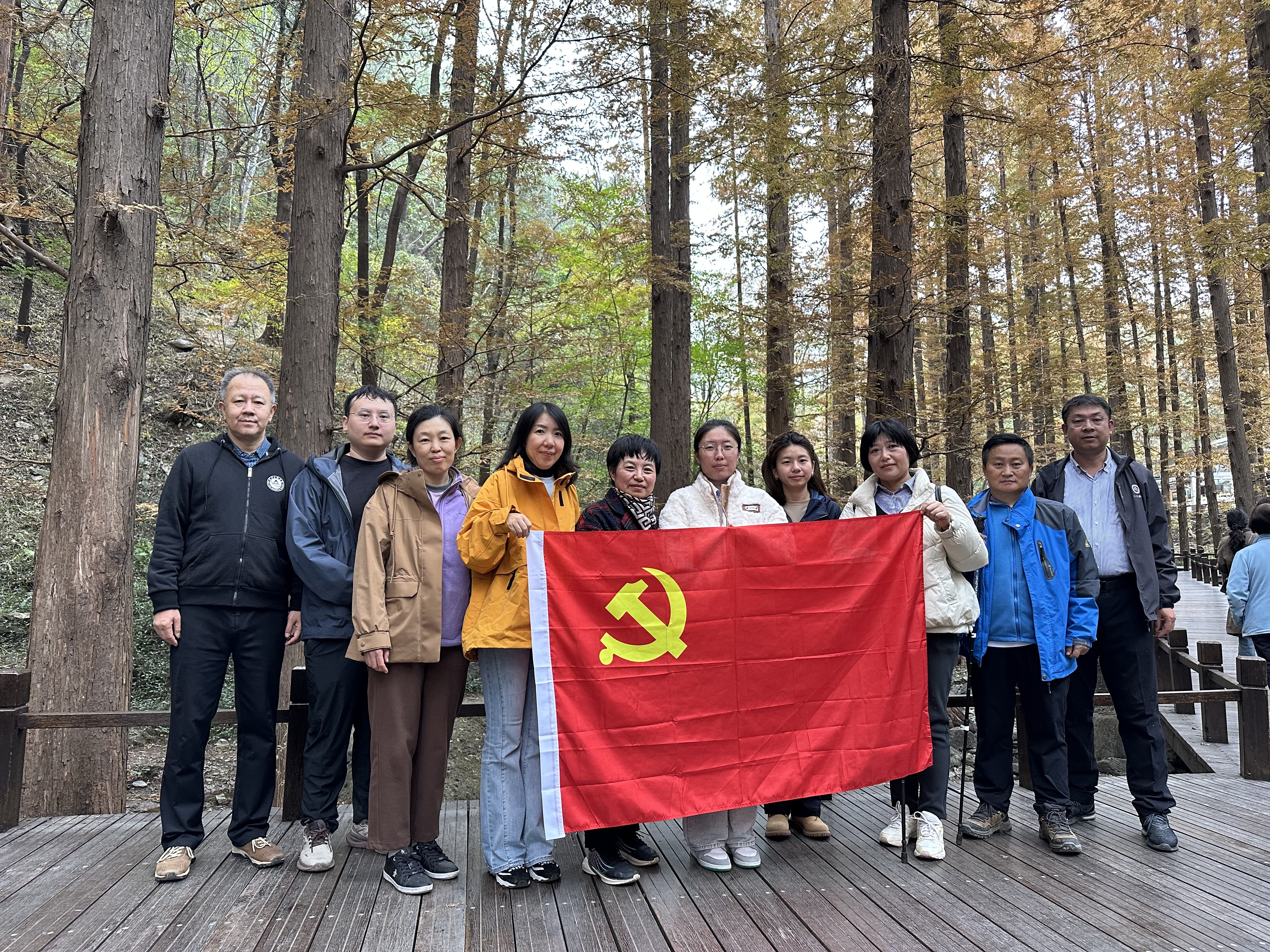 随后,队伍继续前往植物园樱桃沟开展团队拓展活动。秋日的西山色彩斑斓,金黄的落叶与火红的枫叶交相辉映。教职工们时而驻足欣赏美景,用镜头记录精彩瞬间;时而结伴而行,畅谈工作心得与生活感悟,在轻松氛围中深化情谊。经过近三小时的徒步与协作,16:00左右,全体人员顺利抵达植物园南门终点。大家稍作休整,分享登山见闻,脸上洋溢着运动的满足与喜悦。